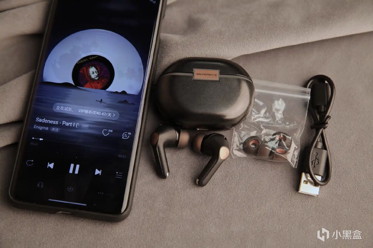 泥炭Air4 Pro使用了入耳式的设计方式,厂家还赠送了两幅不同尺寸的耳帽,匹配不同耳型并充分契合耳蜗,不仅稳固还不胀耳朵,大家可以根据自己的需求选择适合的耳帽,以获得出色的声音表现和降噪效果。另外还赠送了一根TYPE C充电线。