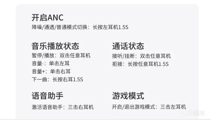 耳机背面的logo部分就是触控区域,我最开始使用时偶尔会有误触情况,使用习惯后就很方便了,另外还可以在APP中可以调协禁用所有的触控操作,可以避免误触的情况。泥炭Air4 Pro耳机的触控操作功能很全面,支持10多种操作,包含了“播放、暂停、接听、挂断、切换歌曲、调整音量、游戏模式、降噪、语音助手”,比普通耳机多了不少功能,建议使用前看一下操作说明。
