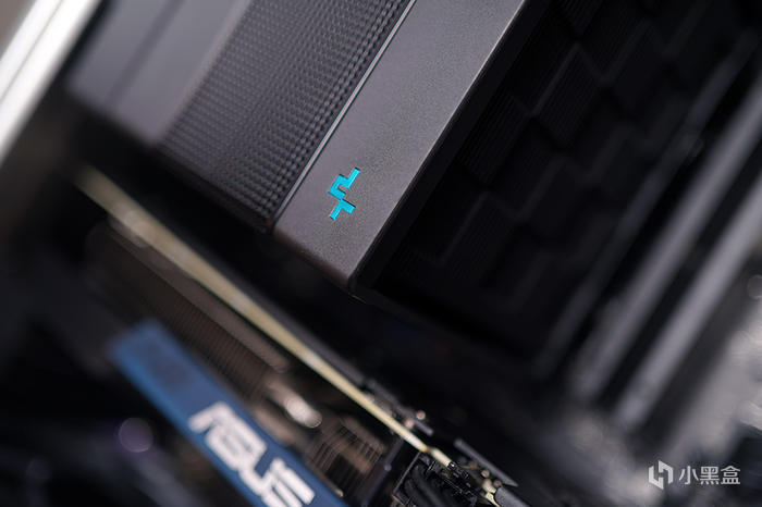 風冷散熱方案搭建,選用的是九州風神 DEEPCOOL 阿薩辛 4 旗艦風冷填滿機箱,這款散熱器採用一體式設計,整體造型四四方方,表面另覆蓋金屬網罩修飾,看着非常的簡約好看,實際散熱效能也不錯,足以應付 I5 13600K 的發熱需求。