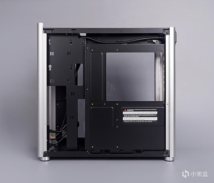 機箱背板,左上角另還有一個 2.5 寸硬盤安裝位,這個位置帶有下凹設計,便於走線藏線,對應一些紮帶開孔,實際走線空間還算夠用,但不算富足。