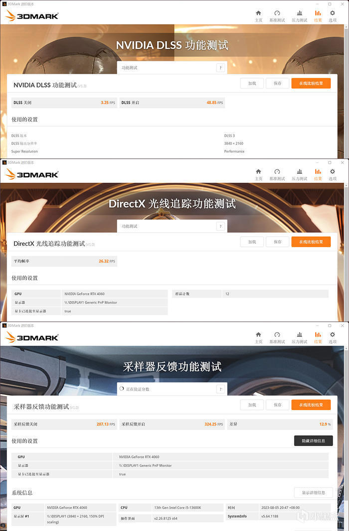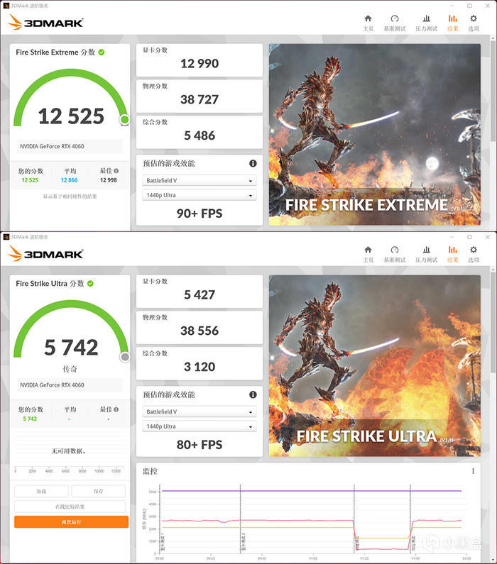 華碩 ATS 巨齒鯊 GEFORCE RTX 4060 O8G GAMING,3DMARK 各種模式下的得分如上。
