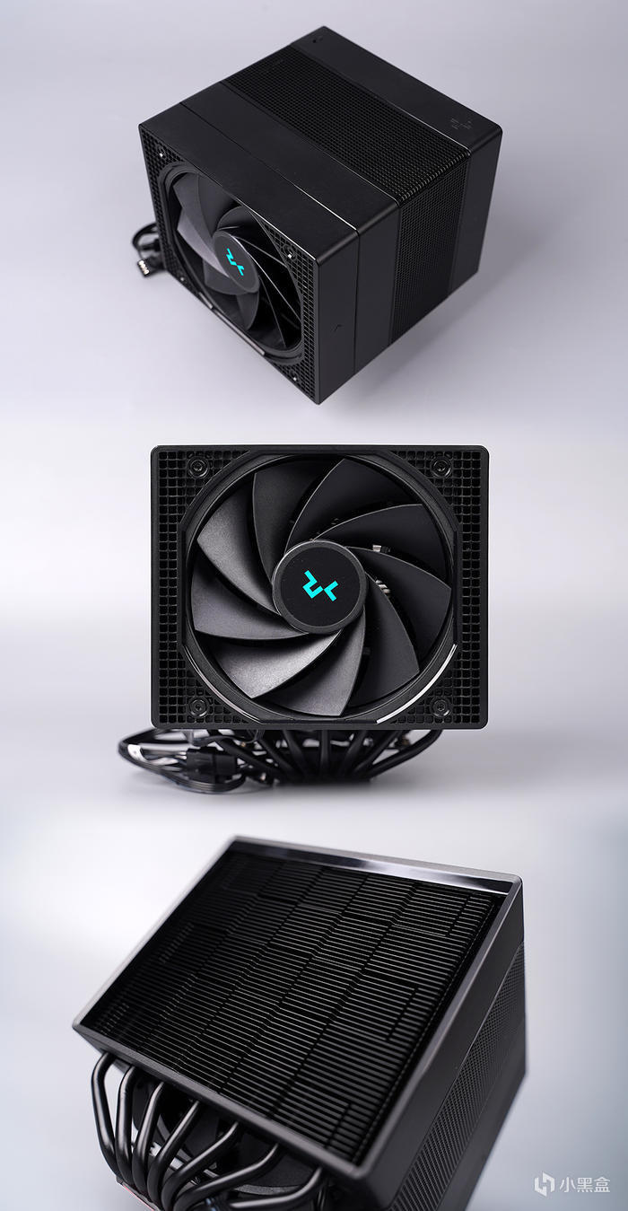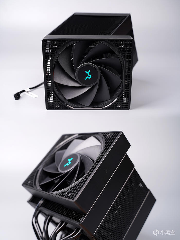 散熱器具體尺寸 144mm×147mm×164mm( W×D×H ),重量約爲 1575g,外觀爲簡約風格設計,顏值非常的好看,整體造型四四方方,表面另覆蓋金屬網罩修飾,網罩內置 140mm 風扇,前置 120mm 風扇採用嵌入式風扇罩設計,使其與散熱器融爲一體。