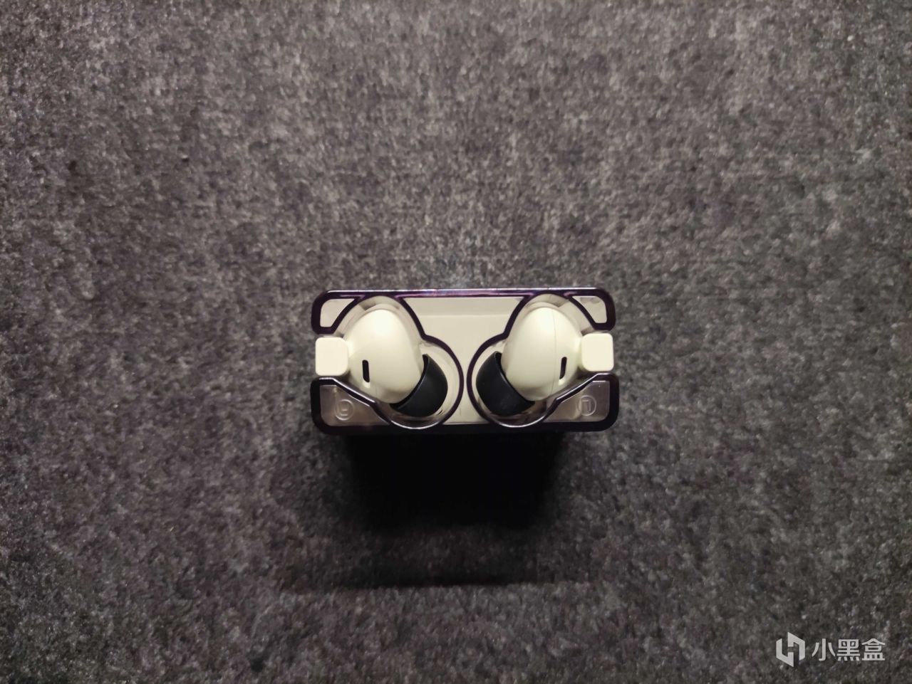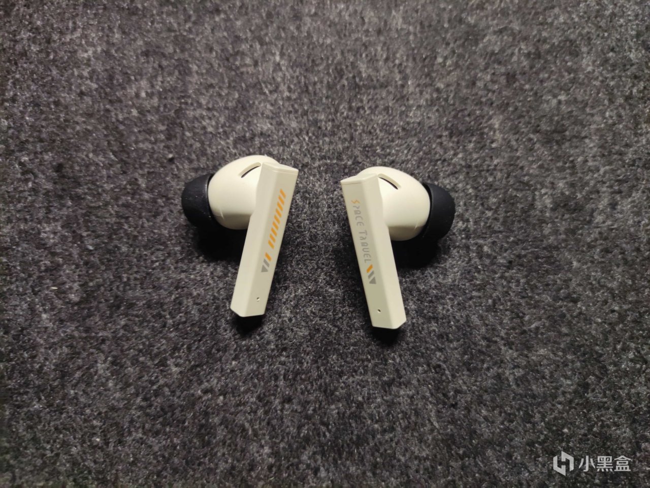 耳机腔体设计的比较圆润,耳机柄上面的图案左右两只耳机是有所不同的。