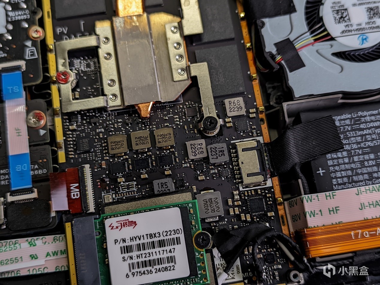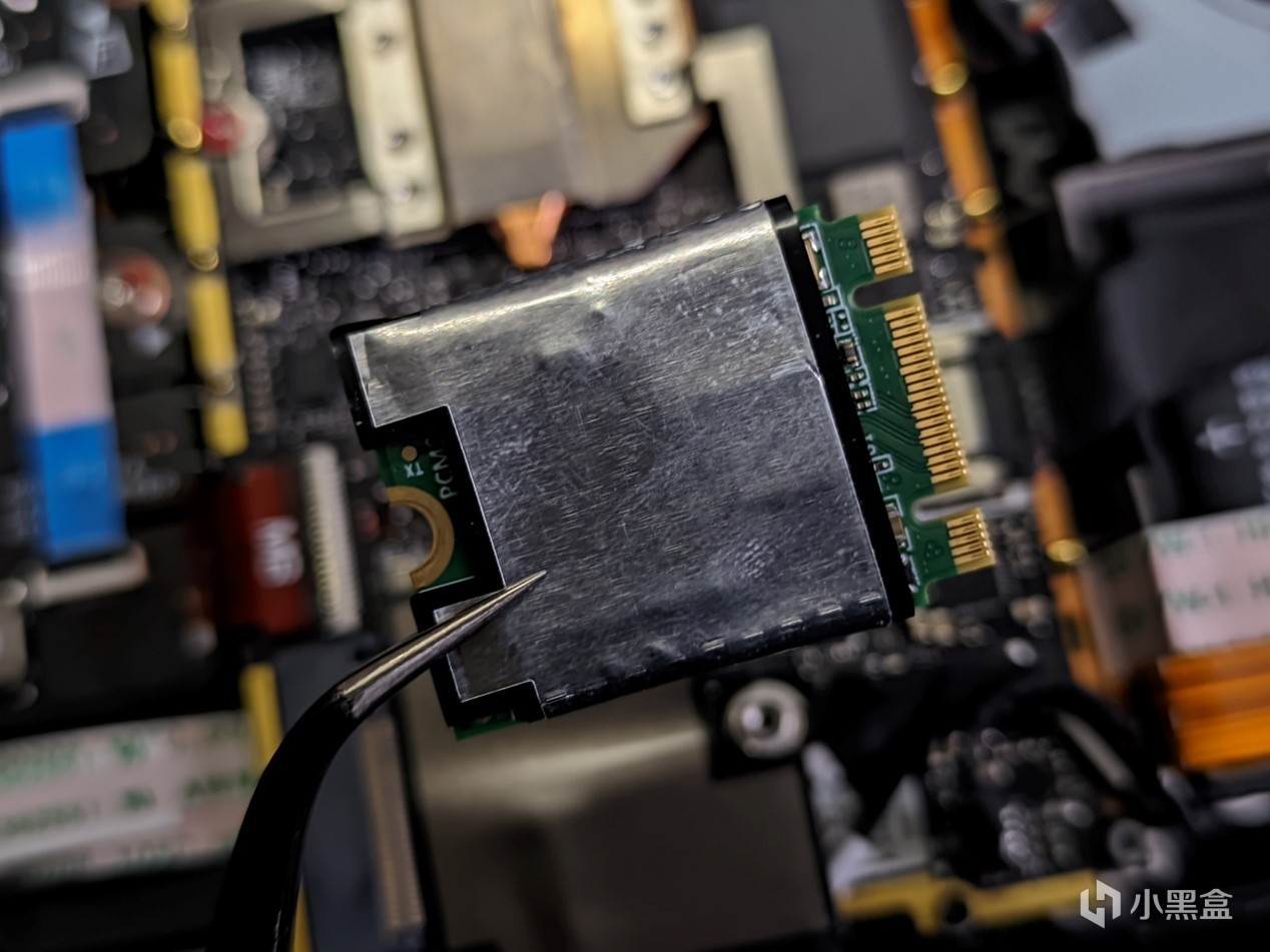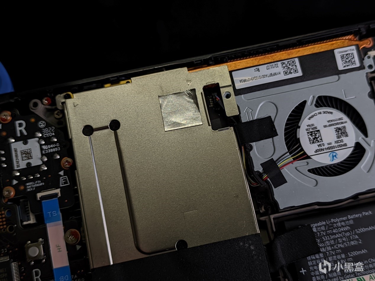 取下後就可以看到硬盤的位置了,我這邊是已經取下來了,上面帶有一層導熱貼紙,不過就這個厚度感覺聊勝於無吧。