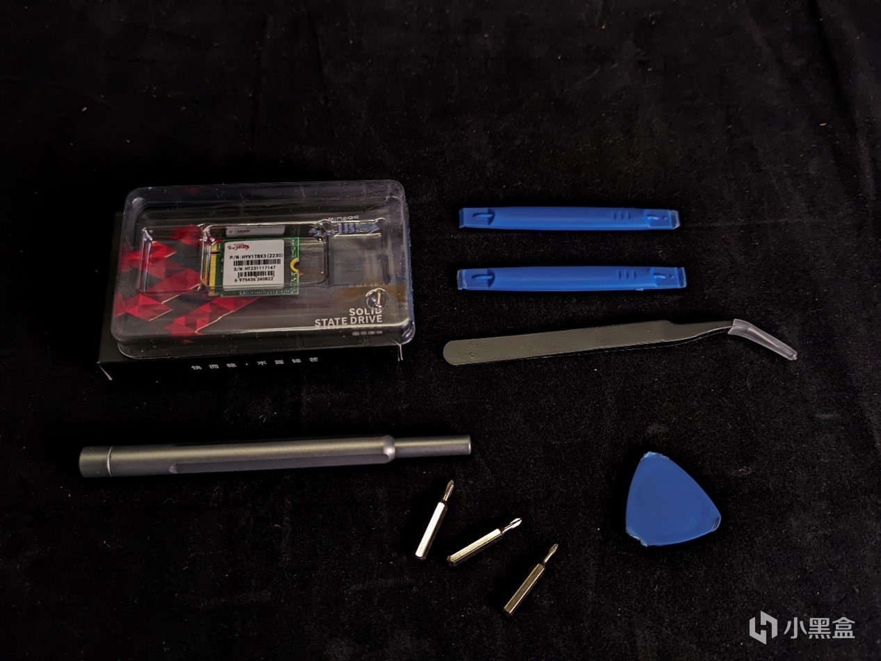 首先還是準備階段,一個2230的固態硬盤,雖然可以後期改裝2242尺寸的,但是不建議更改,因爲魔改可能會導致主板燒燬,一套有着三種尺寸的螺絲刀(Steamdeck螺絲有差別),撬棒以及翹片,在拆機時需要,一個鑷子(用來撥開排線),以及一個帶有8G以上的U盤