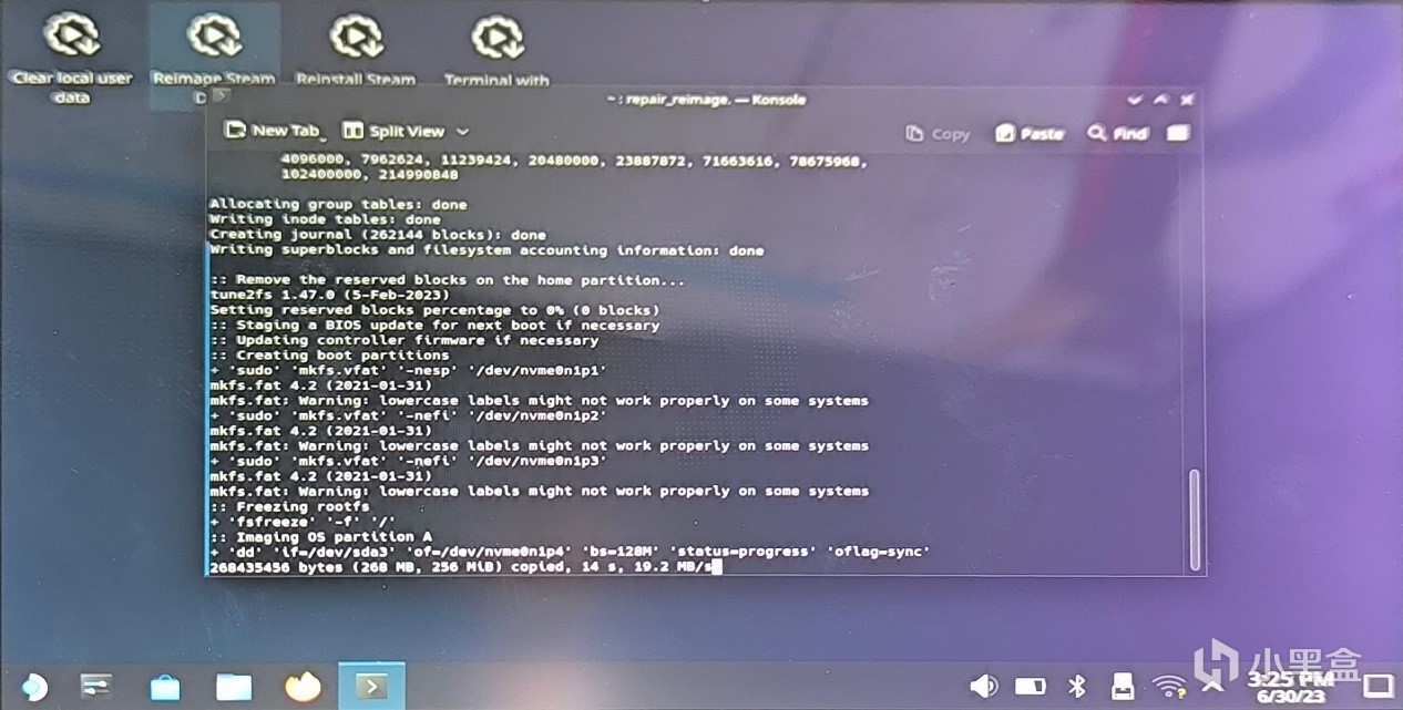 像這樣,耐心等待其跑完,等到出現SteamOS的桌面端,那就可以進行下一步了,點擊桌面上的第二個選項,然後冒出選擇就按第二個以P開頭的選項,兩次過後,Steamdeck將會自動重啓。
