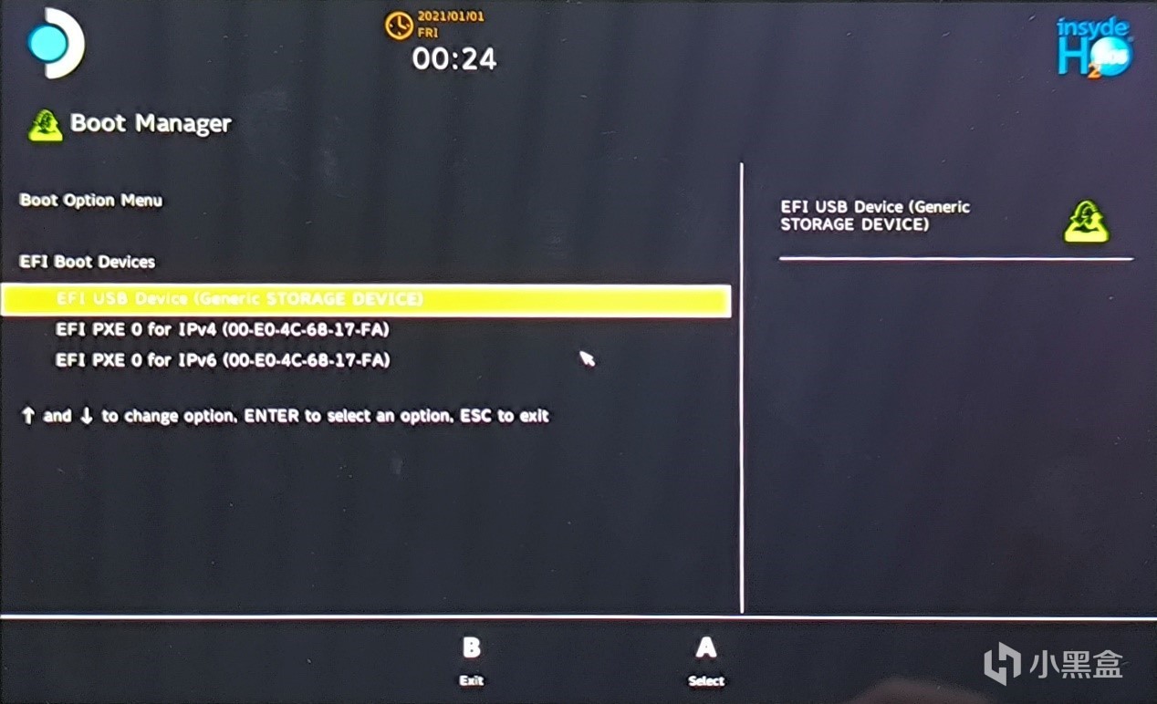 與之前一樣,選擇-和電源鍵進入這個界面之後,選擇USB引導,之後會出現一系列的英文滾動。