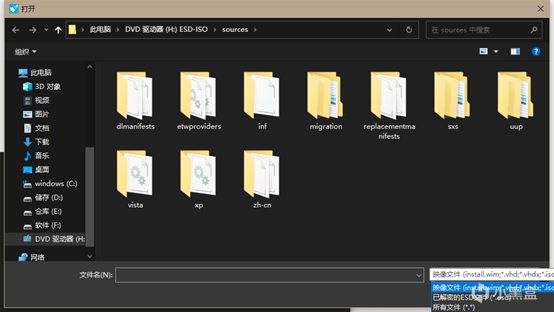 在選擇文件中,將文件類型改爲解密後的esd文件,再在下面選擇寫入的tf卡盤符即可。