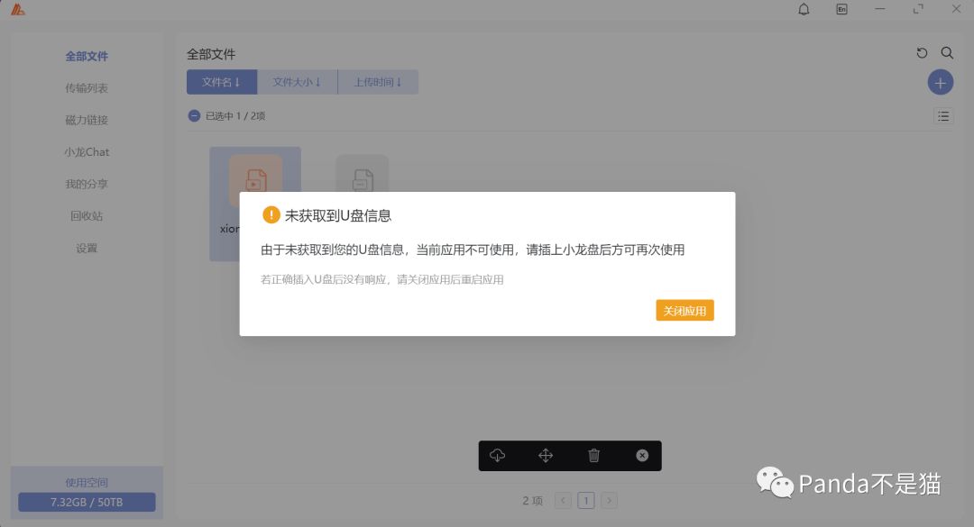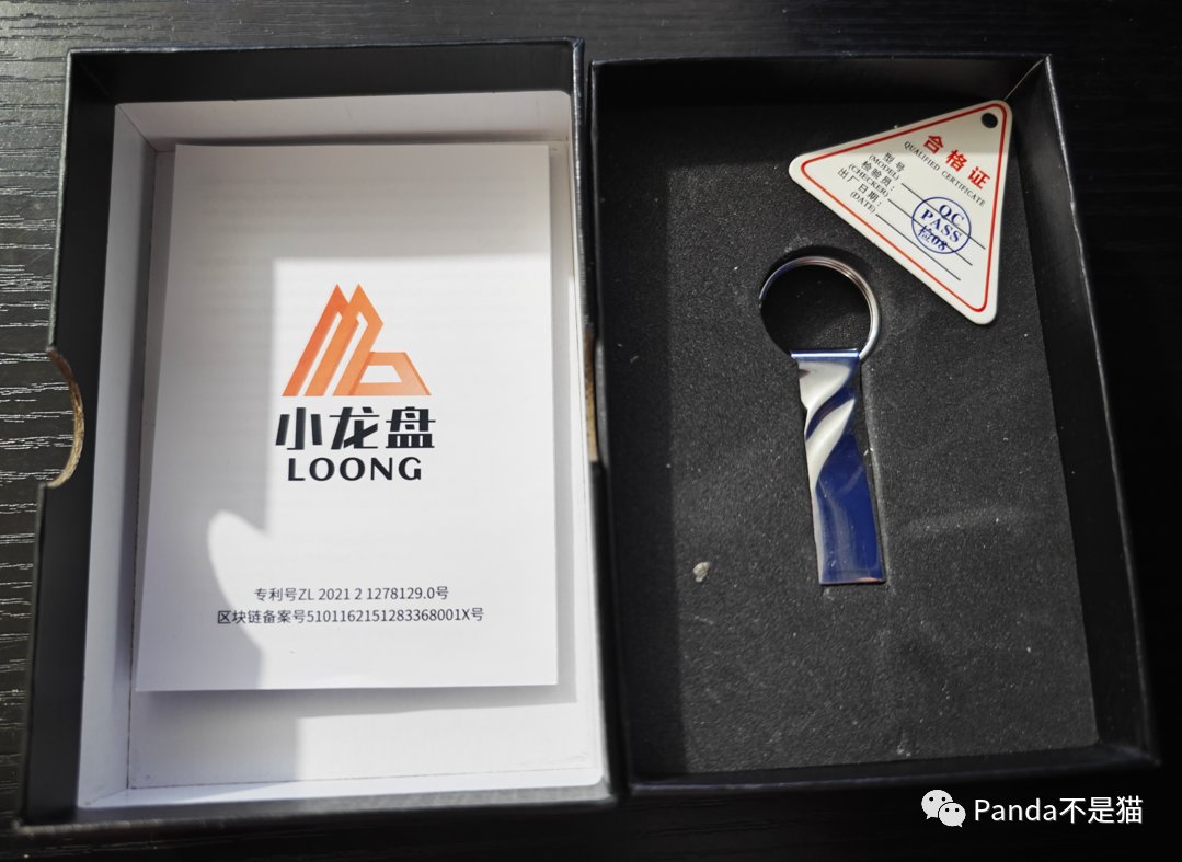 首先介绍一下产品,本次产品为四川星河飞天科技有限公司出品的“小龙盘”。打出了全球首款AI盘的称号,声称有50T的空间。并采用了区块链的加密技术(上一个说自己区块链技术的已经破产了)而同时该U盘的网上的营销也做得蛮多,除了评论区,几乎看不到负面测评(也可能是压根没人买)而本次很有幸能在群友的提供下体验到这么“先进”“科技感”的产品,再次感谢熊猫一群的群管理—越越给到的支持。