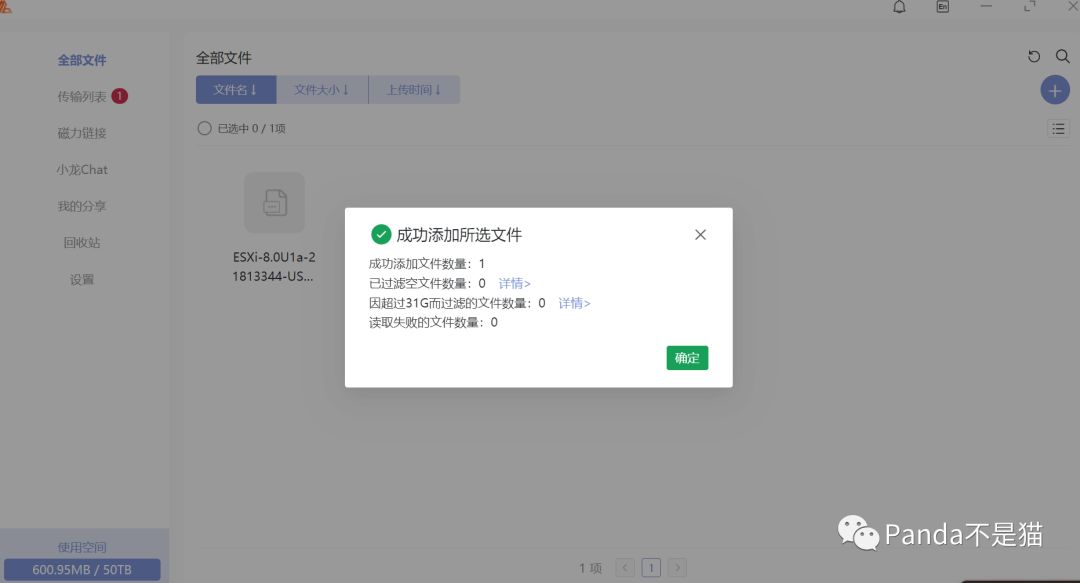 而上传这里也发现一个问题,最大支持的上传文件为31G,超过了就不可以上传了。这样的话50T的空间不能传大文件,那我网盘的价值在哪里?自己的网盘还有限制?
