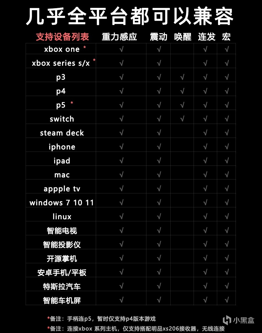 除了在硬件方面下足了功夫以外,明品s830还在软件上对各个平台进行了适配,不但支持ps、switch、switch、pc、xbox这些主流平台以外还有ios、安卓手机平板等等,无愧于全能选手的称号。并且支持一键唤醒ns,有陀螺仪、支持体感操作。