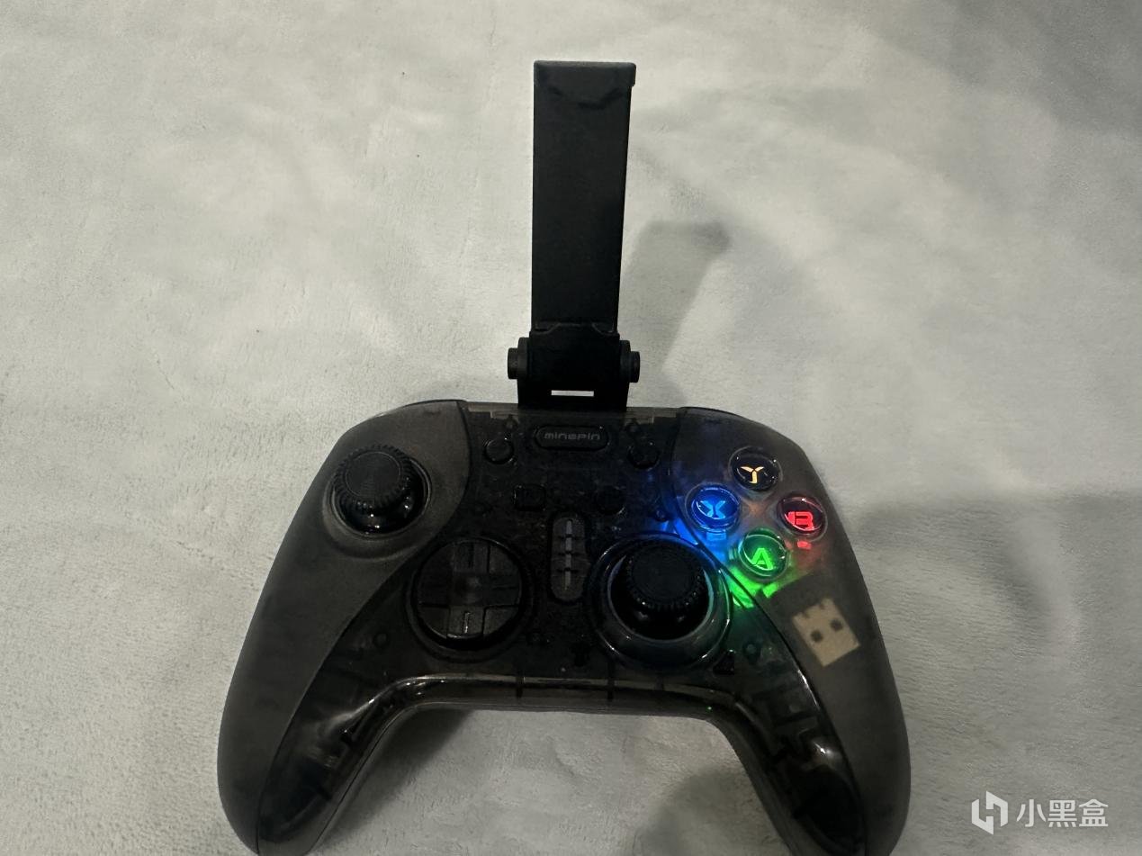 配件方面赠送了一个可拆卸手机支架,这也意味着明品s830不但支持pc、ps、ns平台还支持ios以及安卓手机使用,将手机支架插到手柄上方的槽位上,支架中放上手机就可以很好地利用手柄玩一些支持手柄的手机游戏:王者、吃鸡、原神、重生细胞等等,还可以搭配steamlink,在手机上串流游玩steam。