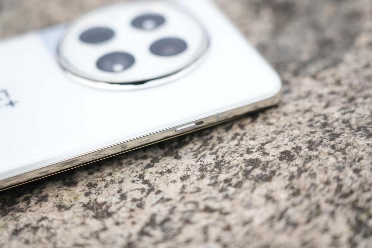 说完屏幕,再转过来看看后盖,让我惊叹的手感就来自于此,一加12有三个颜色,留白、苍绿和岩黑,我拿到的是留白,名字也很有遐想空间。白色陶瓷玻璃,不是单调的纯白,细看里面还有星星点点闪烁,温润雅致。