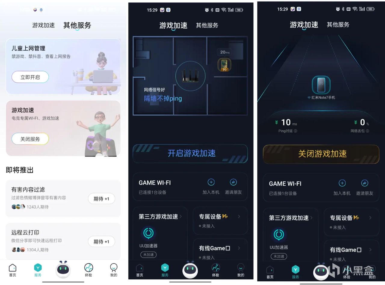 既然锐捷黑豹X30E Pro定位是电竞路由器,自然有黑科技加持,针对WiFi网络出现断流、延迟高的情况得到极大改善。为游戏玩家可提供了专属的游戏Wi-Fi 频段,可以在 App 端对游戏终端开启游戏加速功能降低网络延迟,使用手机、平板、电脑,电视玩游戏时,能够得到最高优先级的网络保障,进一步提升游戏体验。