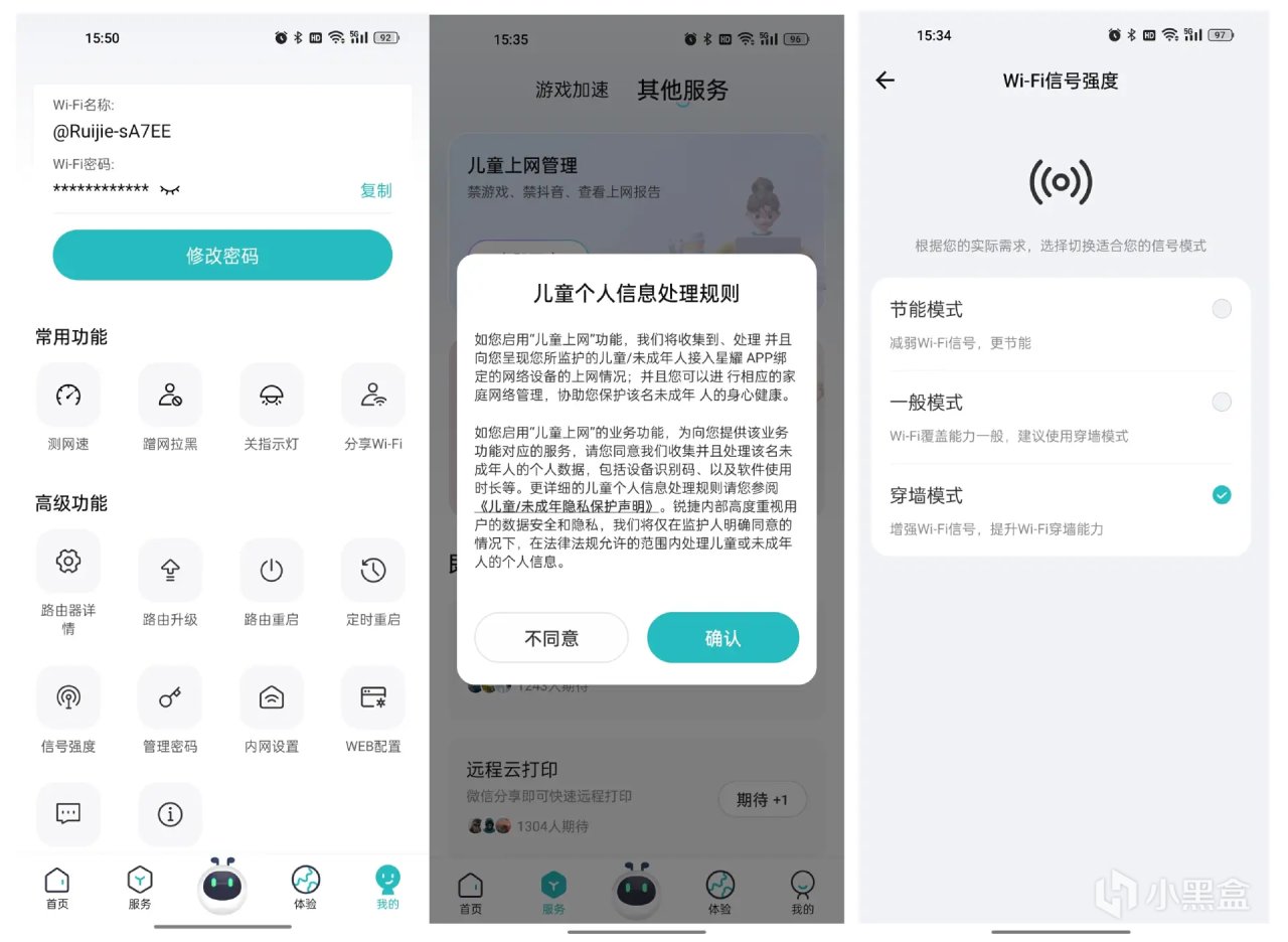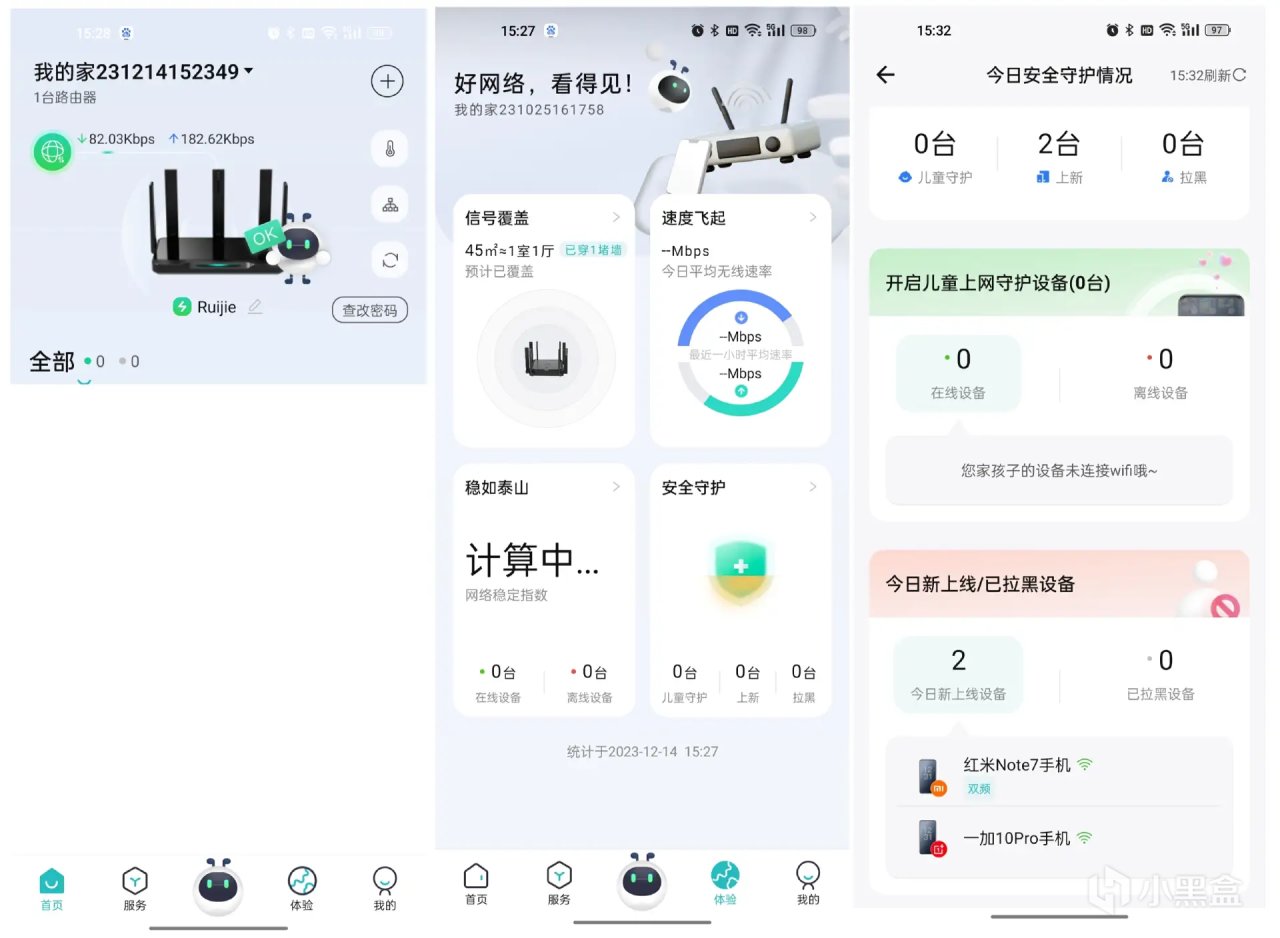 锐捷星耀+App上可以管理使用终端的网速,上网时间等,还能进行黑名单、修改名称密码、云打印、访客Wi-Fi、双频合一、终端可视等操作管理,大家收到后可以细细研究一下。 我用得最多的就是儿童安全守护功能,现在的小朋友都喜欢玩手机,自控力又很差,我们可以通过这个功能管控小朋友使用的电子设备的上网时间和 APP 应用,目前可以对针对300 款 APP进行管控,基本包含了家长们最想禁用的游戏和视频类应用。