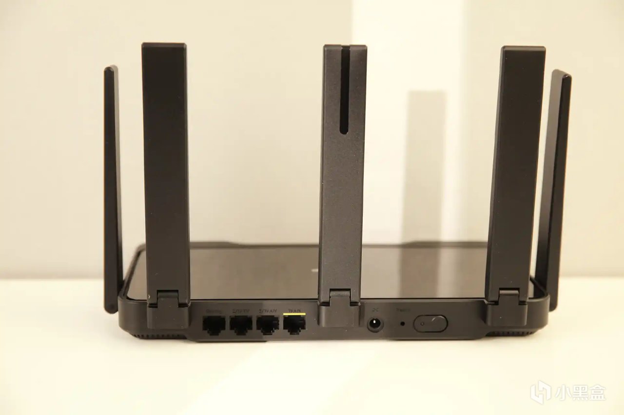 在路由器背面配备了2 个千兆 WAN/LAN 口,2 个千兆 LAN 口,支持双 WAN 叠加、双 LAN 聚合,内外网均能拥有超千兆体验。比如你的家里有两条光纤带宽,这时就可可以开启双WAN口聚合(2.5G+1.0G),带宽速率可以超过1.6Gbps。