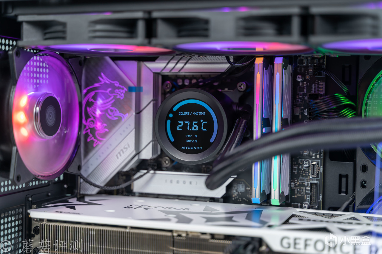 ▼水冷用的是愛國者的冰魄SX360一體式水冷,這款水冷的設計很有意思,在水冷頭上標配了一塊2.13寸的數碼顯示屏,可以顯示更多的內容,包括溫度、佔用之類的,很實用。