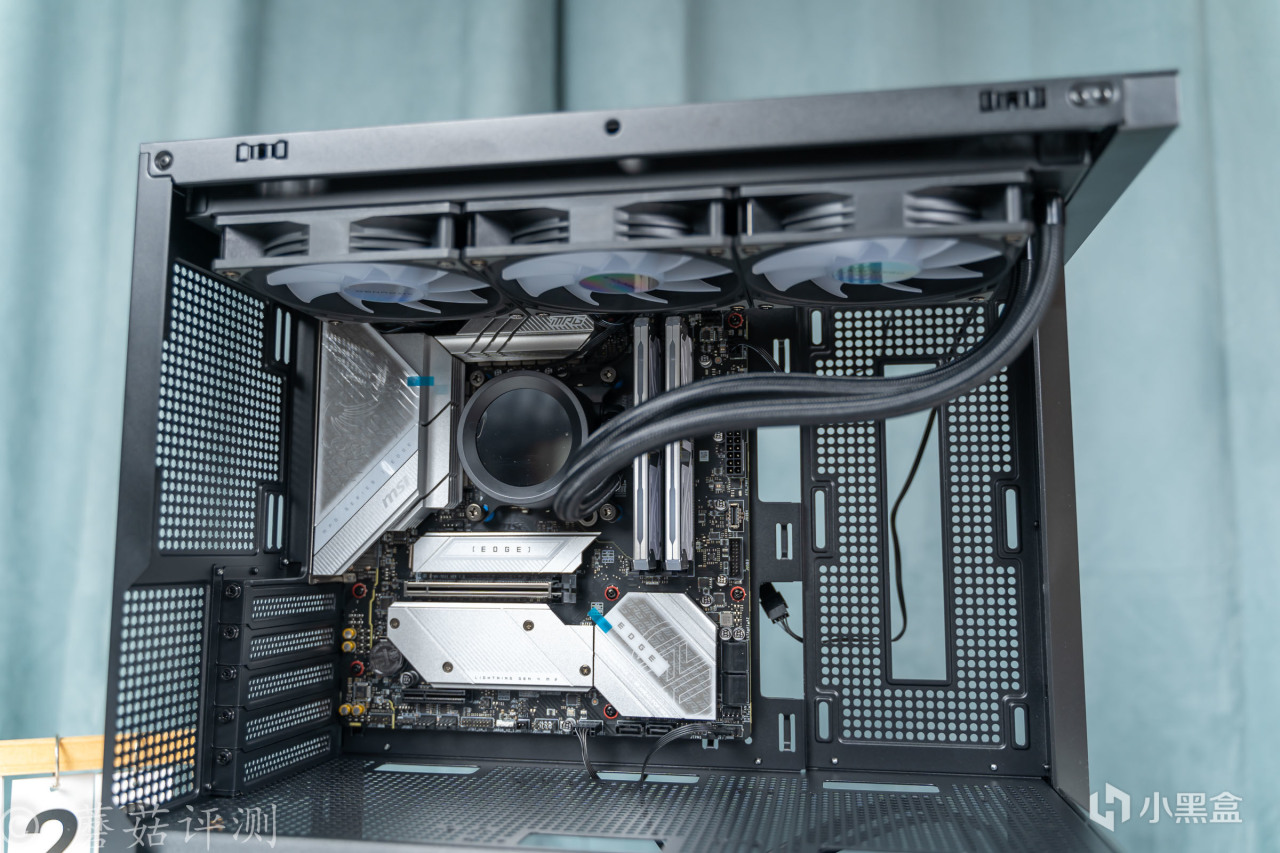 ▼水冷頭輕鬆固定,水冷排安裝到機箱的頂部,機箱頂部的空間還是非常充足的。