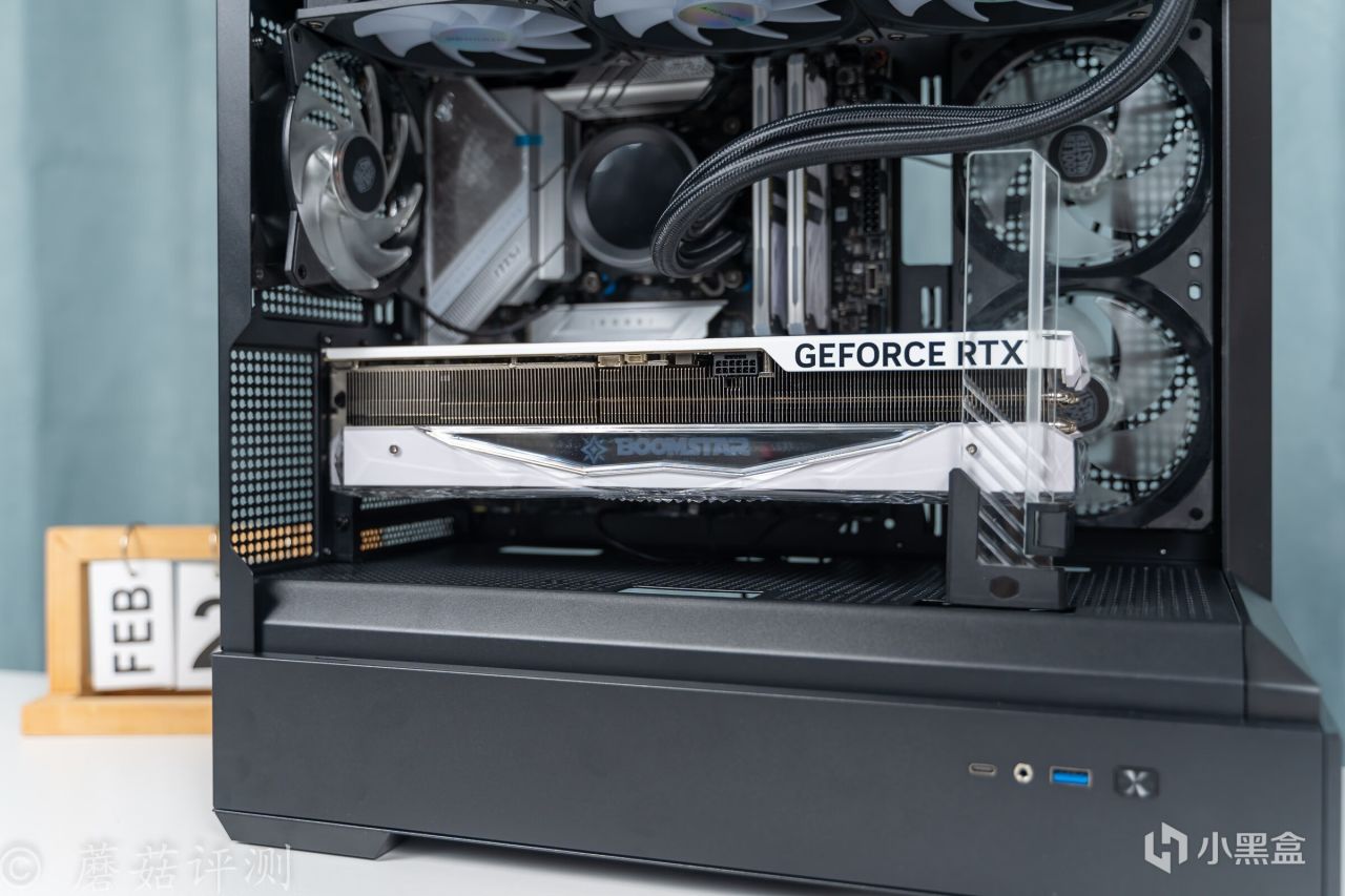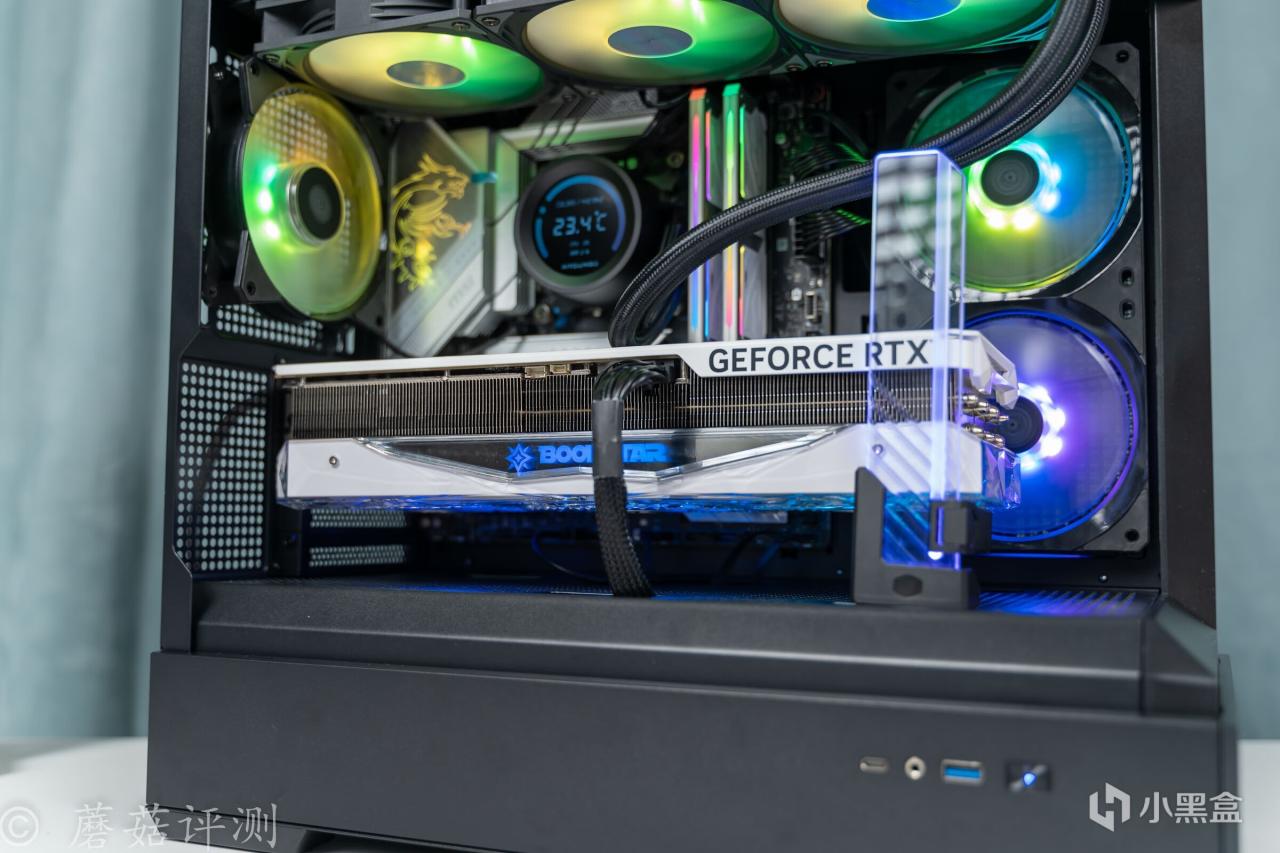 機箱的內部結構設計方面,是愛國者經典的星璨·嵐,這款機箱的內部結構設計挺不錯的,硬件兼容性表現很棒,機箱的頂部可以輕鬆安裝一個360的水冷排,面對三風扇、三槽的非公影馳RTX4080星耀OC顯卡,也可以輕鬆容納。另外在機箱的後部和側面,還可以安裝三把120mm規格的機箱風扇,輕鬆打造更加優秀的機箱風道。