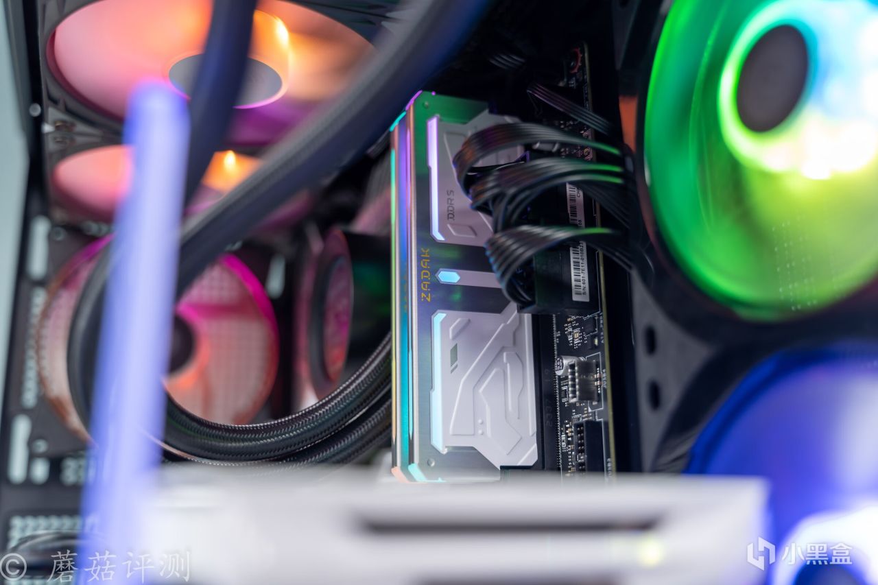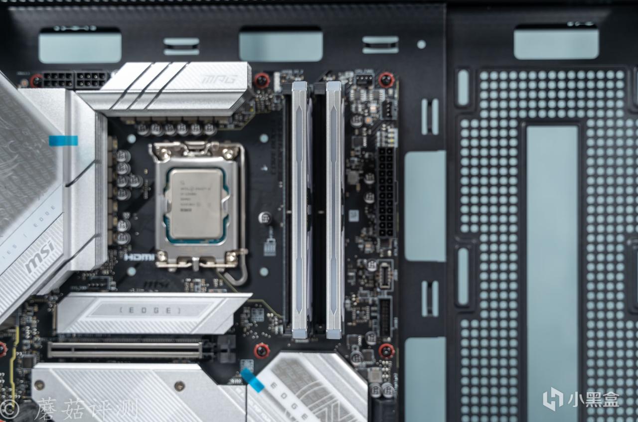 ▼這裏是16GB*2 6000MHz,雙通道內存,這裏首選2、4插槽。這套內存搭配微星這塊B760M刀鋒Ti主板,整體的效果非常不錯,很搭。