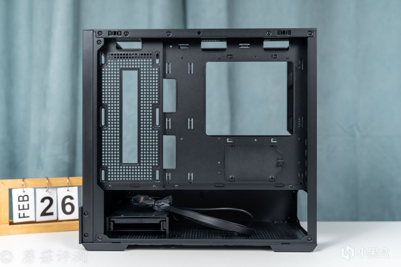 ▼機箱的內部空間設計很熟悉,左側是主板的固定位,四周有各種走線開口,後部有一個機箱風扇固定位,右側有一個機箱風扇固定位,可以安裝兩把120mm規格的機箱風扇。