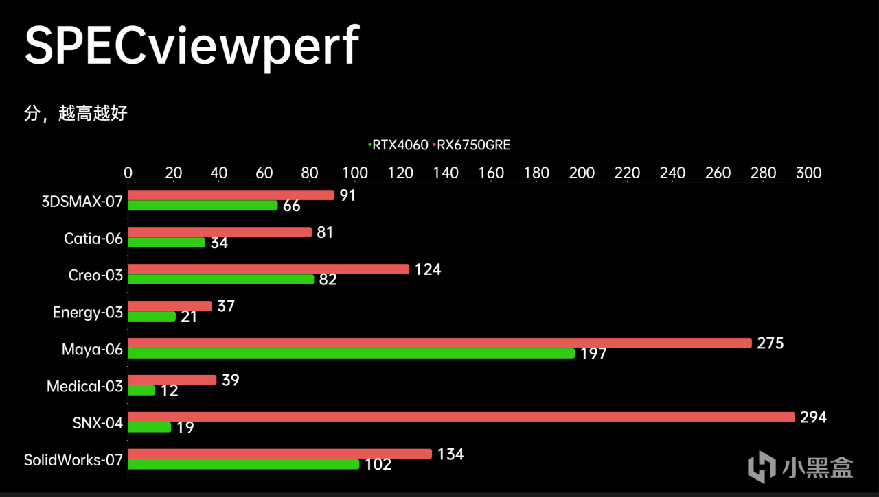 从各子项成绩来看,RX6750GRE都占优,如果你用这些软件制作3D、建模、仿真等,A卡也有不俗的表现。