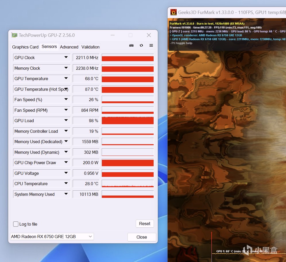 通过FurMark烤机,来看看这两款显卡的散热表现,室温25℃,单烤显卡。