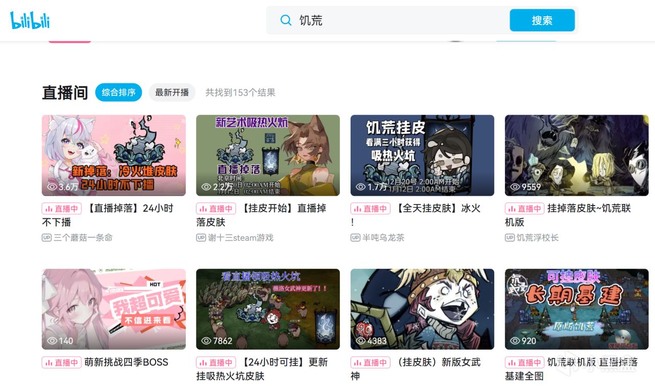 登录账号后,直接搜索饥荒,然后点一下直播分类