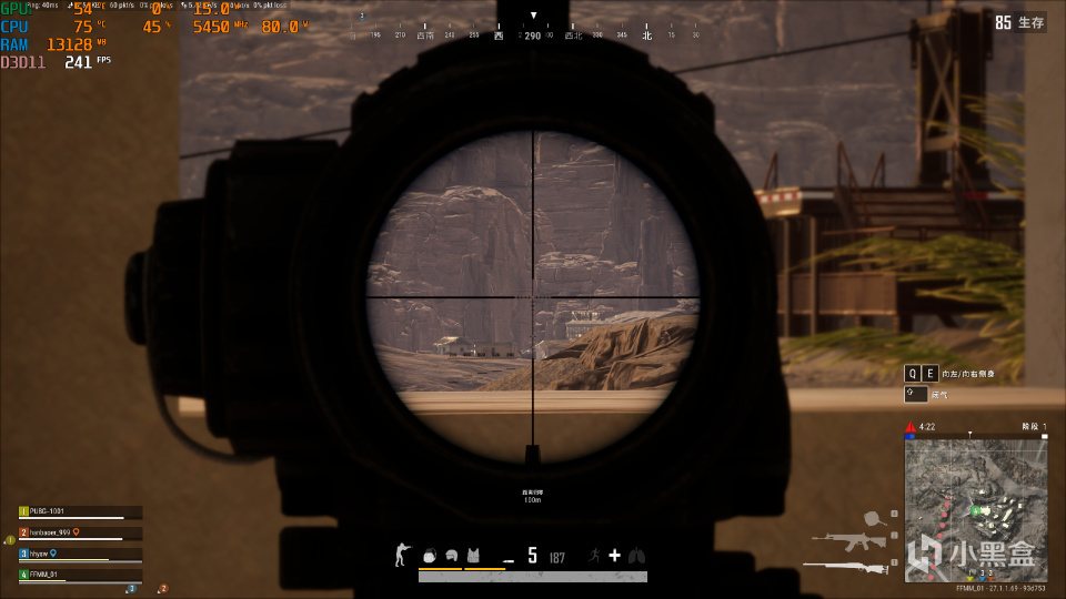 《绝地求生》2K分辨率+三极致画质,简单场景游戏FPS能达到200以上,一些复杂场景则保持在100FPS以上。