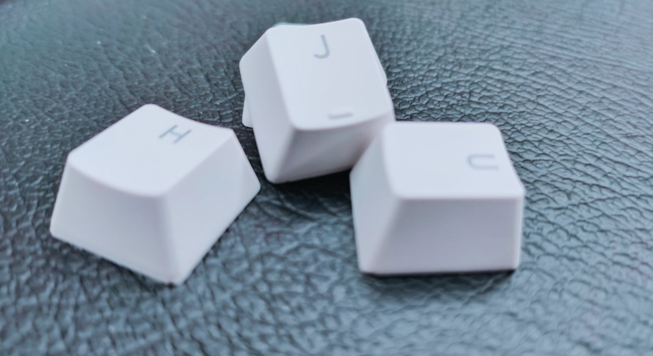 键帽方面采用了ABS透光键帽,透光性还不错,并且做了类PBT手感的处理,带有磨砂的质感,棱角方面特地做了处理,非常的圆润。