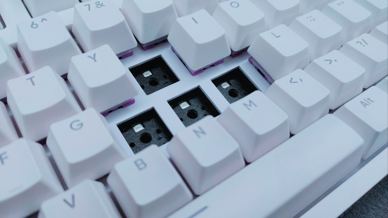 配色方面较少,只有黑色与白色两种选择,轴体方面的选择较多,足足有7种,分别为KTT青轴/KTT红轴/KTT茶轴/GANSS蜜桃粉轴/GANSS柠檬黄轴 /KTT风信子轴/KTT静音酒红。以下为我的一些整理。