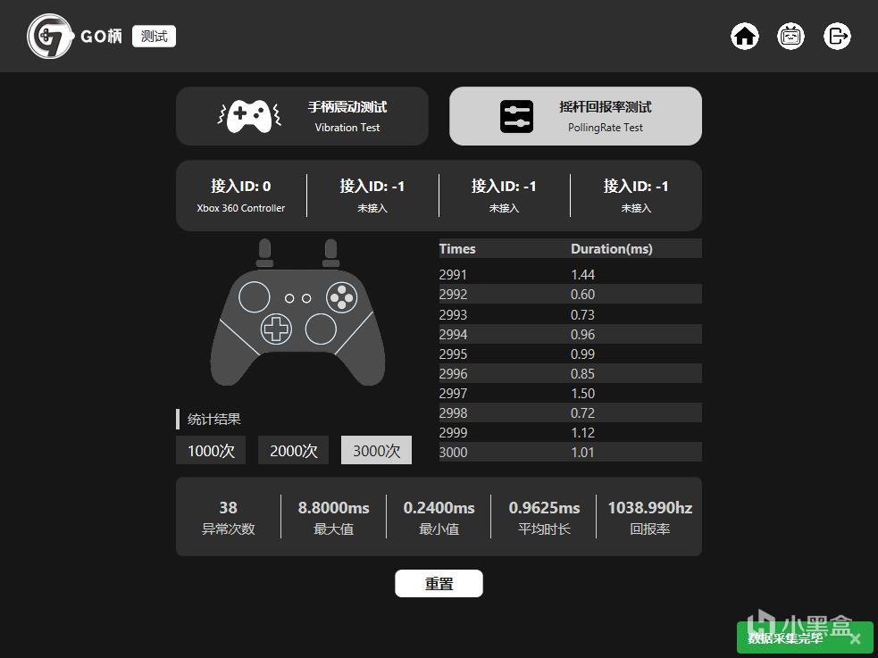 之后就是回报率的测试了,官方说的是有线为1000hz,无线及蓝牙为160hz,实际测试下来的数据是比较相似的,不过可能是个体原因?我这边的蓝牙和无线的回报率更接近150hz,不过有线部分倒是没有什么问题,甚至还超了一点。