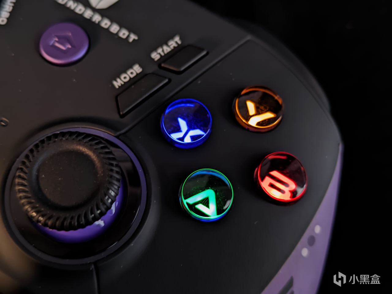 ABXY部分采用的是导电胶设计,手感还蛮好的,我手上这把的一致性不错,没有出现四个按键四个音的情况,不过在功能键上,采用的是锅仔片设计,咔哒咔哒的声音还蛮解压的。