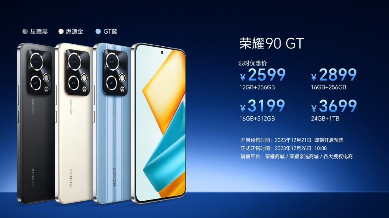 12月21日,荣耀正式发布荣耀 90 GT,具体配置如下。