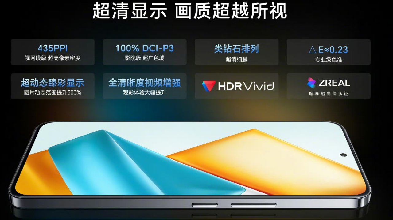 搭载一块6.7 英寸 2664×1200,1.5K分辨率OLED 柔性直屏,支持 120Hz高刷,3840Hz PWM 高频调光,1200nit全局峰值亮度、2600nit局部峰值亮度,10.7 亿色,100% DCI-P3 色域。