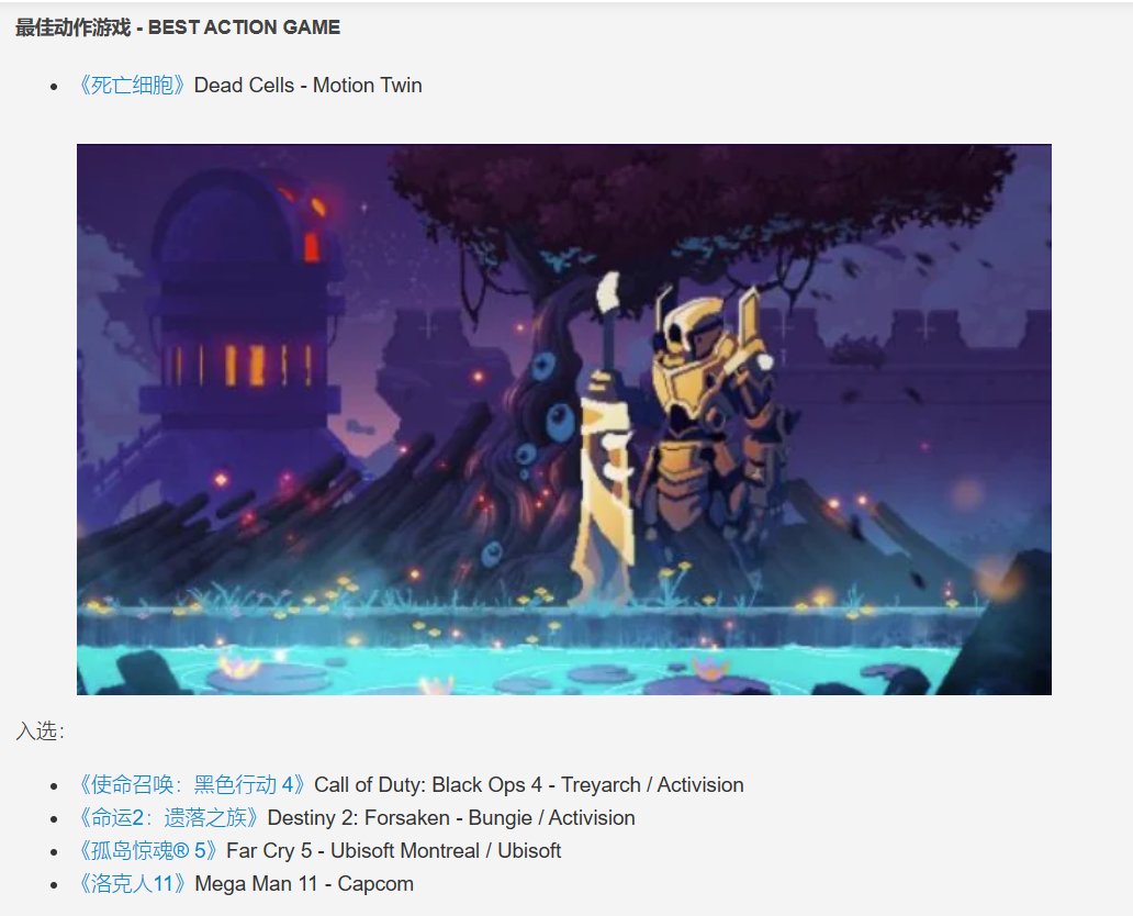 似乎一款遊戲即便沒有任何的動作要素,或者說少得可憐的動作要素,再或者說只有演出效果的動作元素,他們也都可以是TGA眼中的動作遊戲,這就是TGA對動作遊戲的重定義。