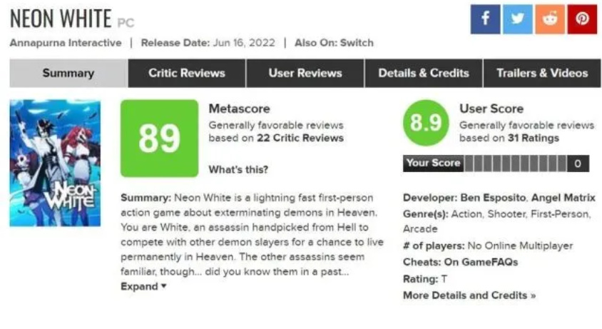 霓虹白客當時的MC評分