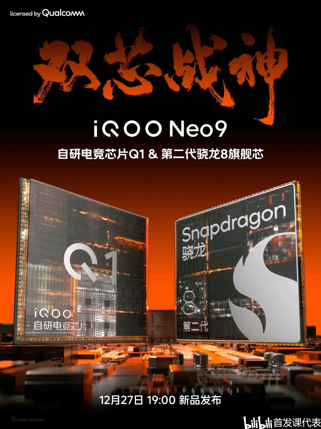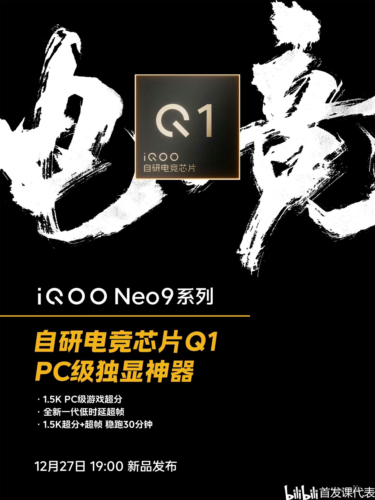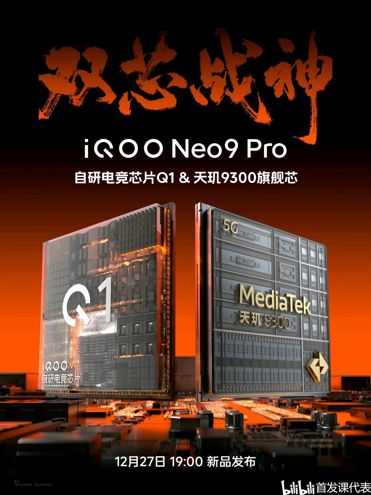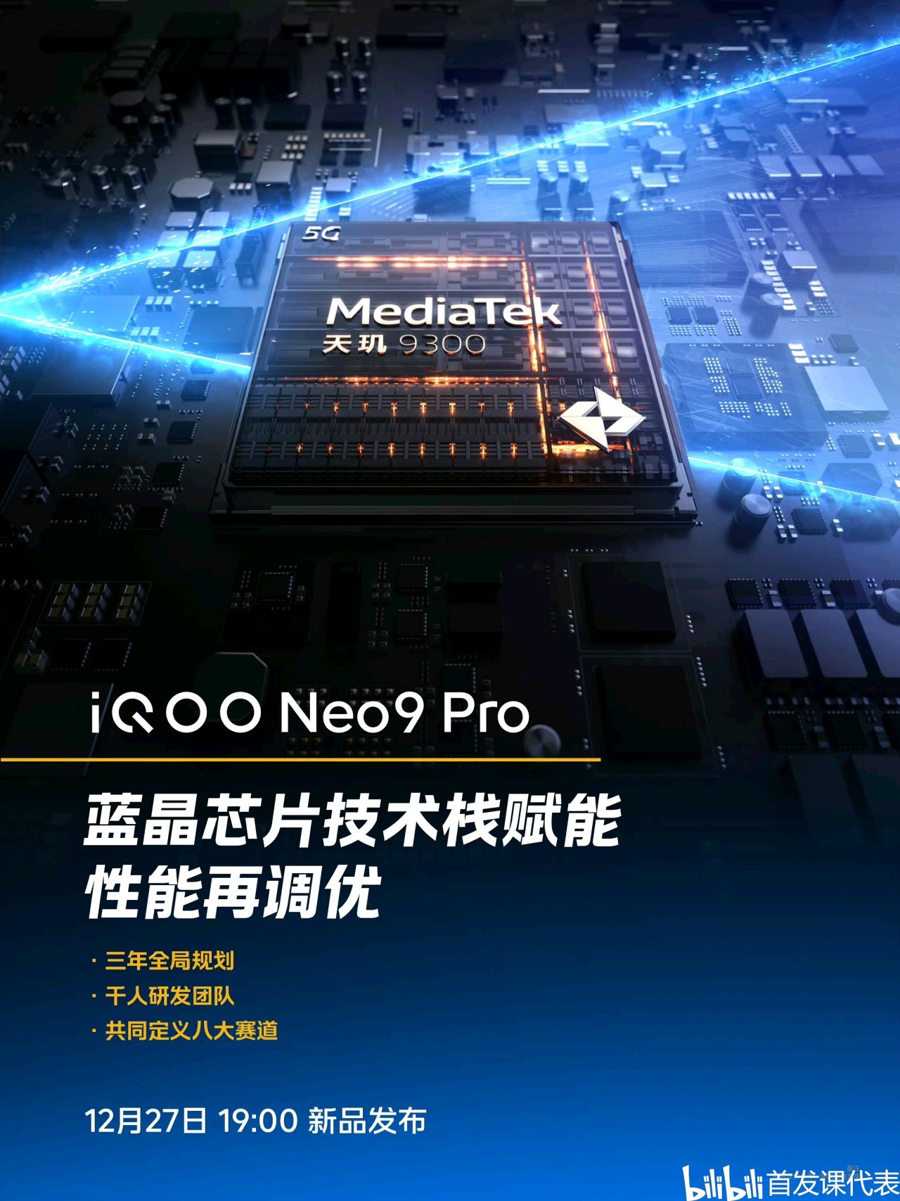 ——iQOO 官宣,iQOO Neo9 系列将于 12 月 27 日 19:00 发布。