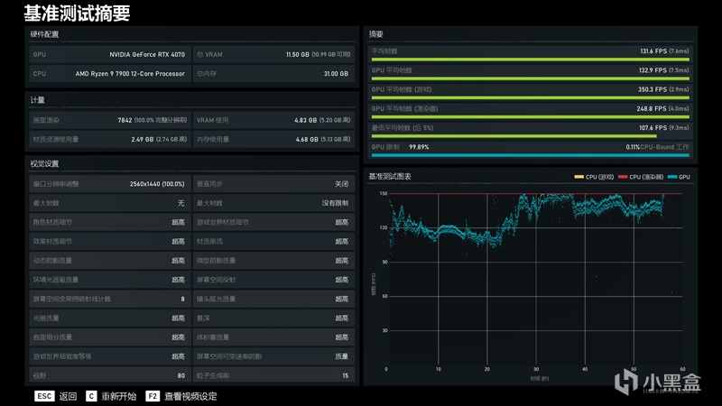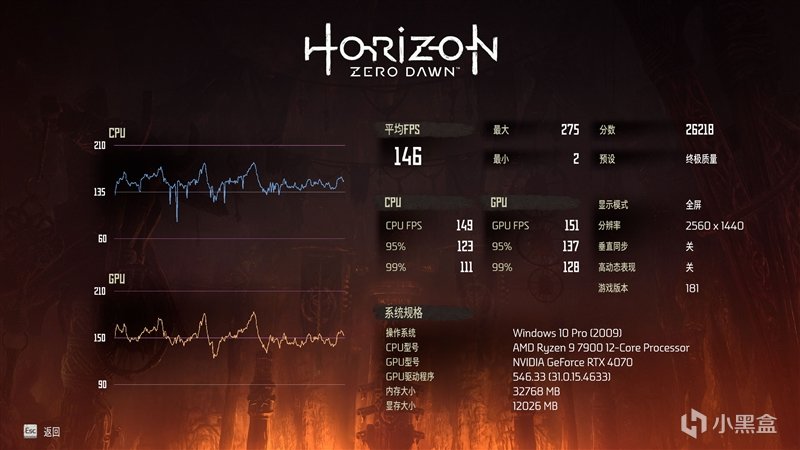 在《地平线:零之曙光》2K+预设终极质量画质下,平均帧数为146 FPS。
