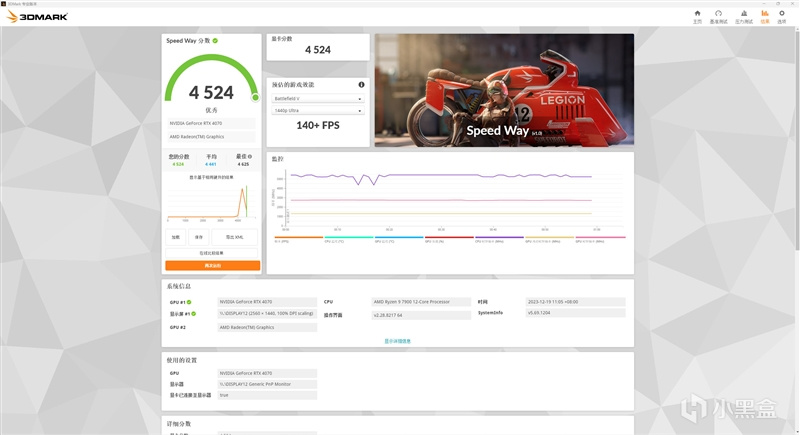 在3DMark的Speed Way测试中,影驰20周年RTX 4070显卡取得了4524的成绩。
