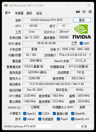 下图为影驰20周年GeForce RTX 4070纪念版的参数(以下简称影驰20周年RTX 4070):