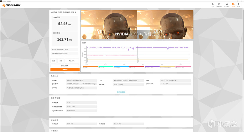 在3DMark的NVIDIA DLSS测试项目中,将画面分辨率改为2K分辨率、选择DLSS 3,画面质量为Performance。