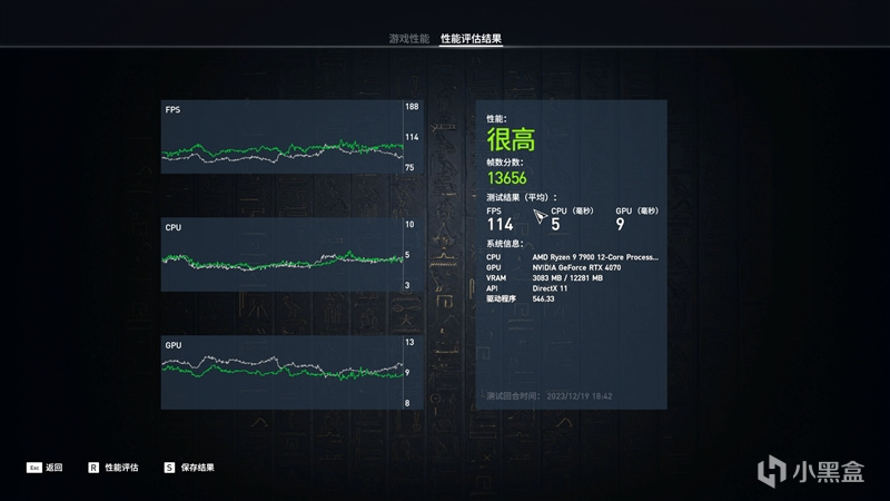 在《刺客信条:起源》2K+预设极高画质下,平均帧数为114 FPS。