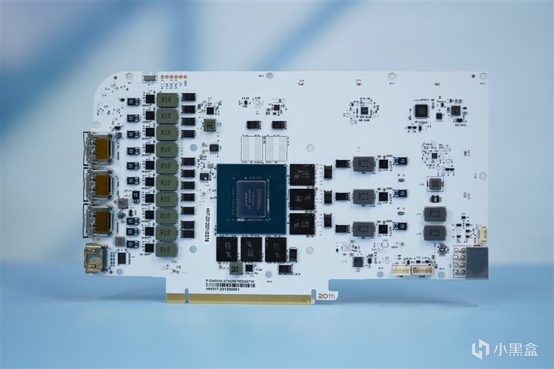 拆开背板后,影驰20周年 GeForce RTX 4070显卡使用了非公纯白PCB设计。