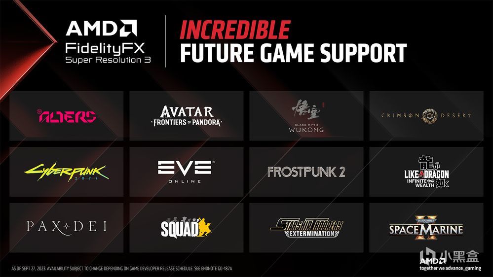在遊戲支持方面,目前已有兩款遊戲正式支持FSR 3,分別是《魔咒之地》(Forspoken)與《不朽者傳奇》(Immortals of Aveum)。AMD方面稱,在未來幾個月內,還會有包括《黑神話:悟空》、《賽博朋克2077》等在內的至少10款遊戲將支持FSR 3。
