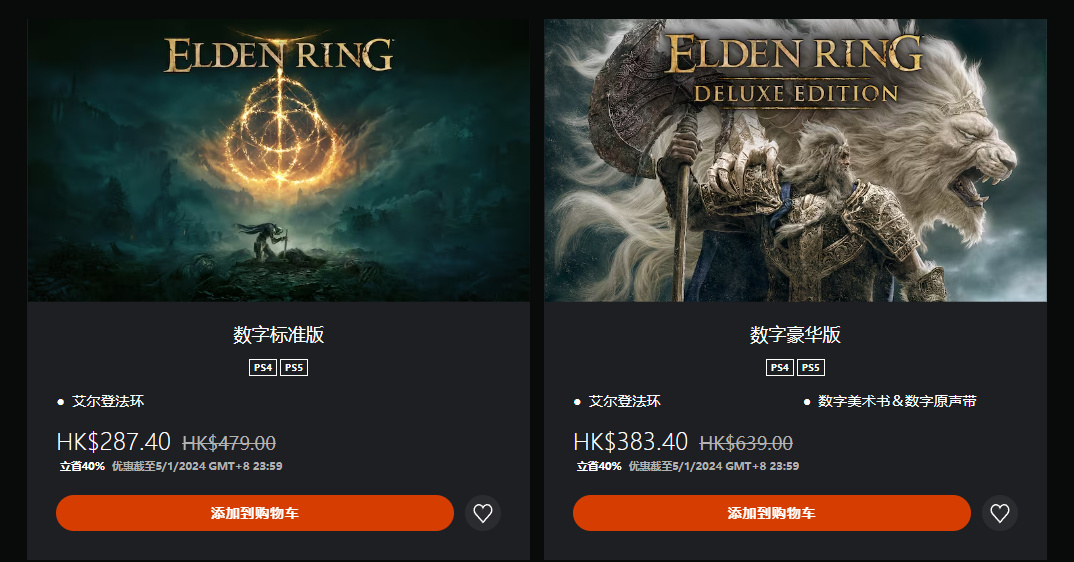- PlayStation: 1月6日0点截止;港区标准版287.4港元、数字豪华版383.4港元