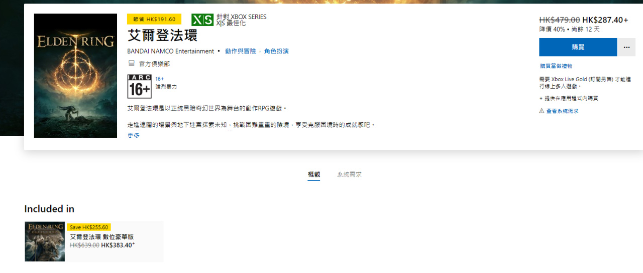 - Xbox: 1月3日截止;港区标准版287.4港元、数字豪华版383.4港元