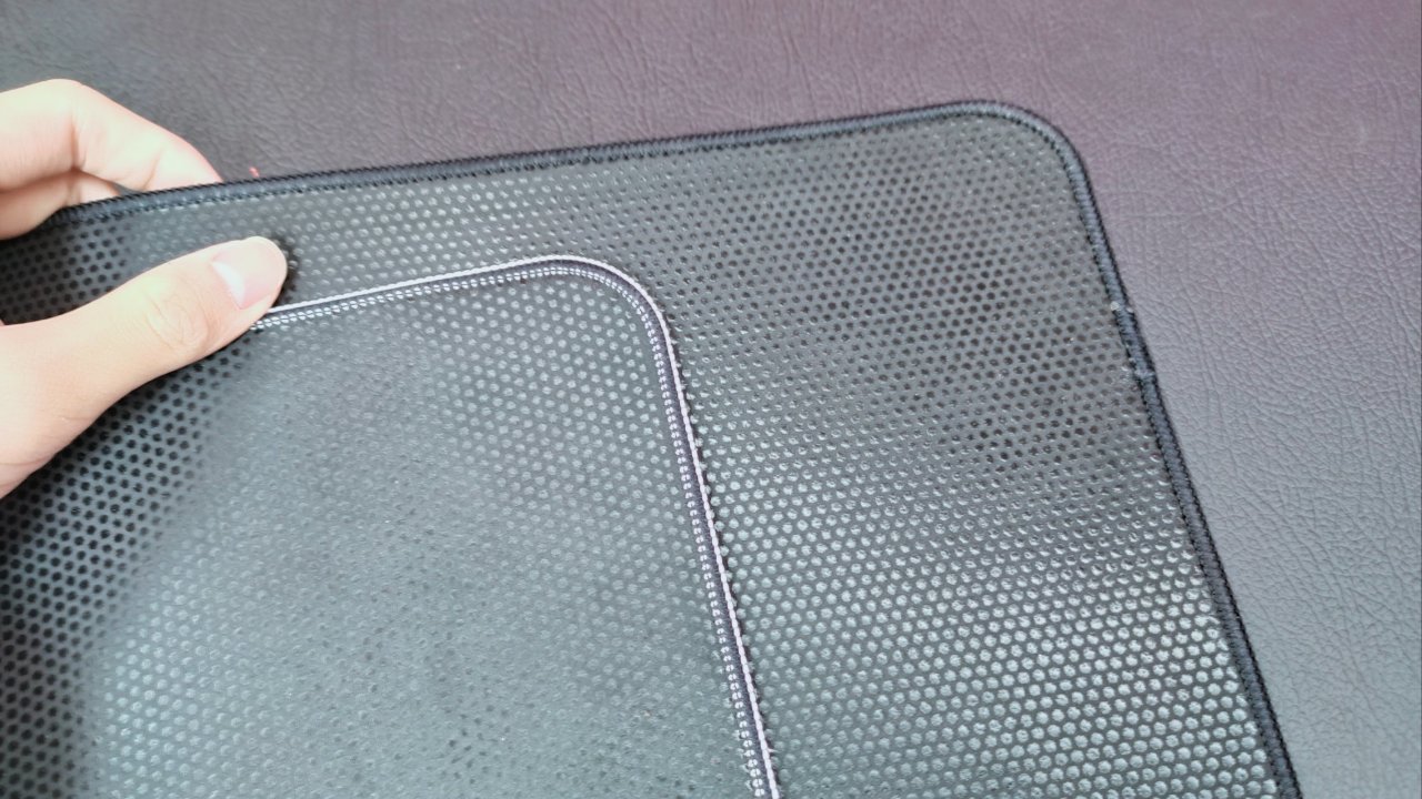 包边上超细锁边,低密窄紧,包边呢整齐细致,并没有什么毛边的出现。并且包边采用了下陷式锁边处理,略低于鼠标表面,划出边界也无凹凸感,对于平常经常要大幅度拉枪的来说是并没有什么影响的