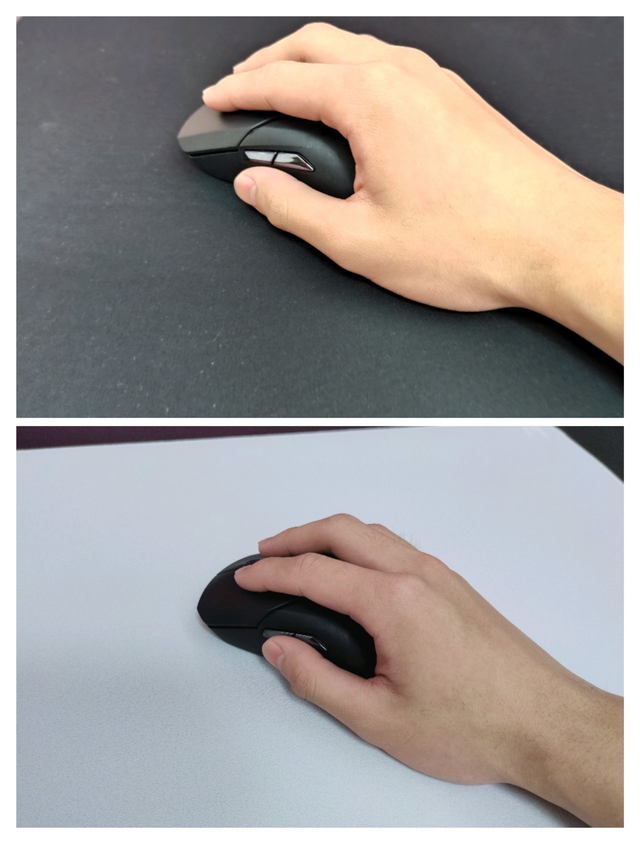 H20的表面呢采用了绒布细面编织,摸起来较为顺滑,亲肤感不错。并且还具有防水的特性,对于手汗玩家来说是个很好的福音。甲的表面则采用了粗面乱纹编织,表面较为粗糙,颗粒感强,但是因为鼠标与脚贴接触面积较小,所以滑动起来相对顺滑,急停方面也是很稳的。下面的图片呢为两者放大后的面料对比,感兴趣的可以看看