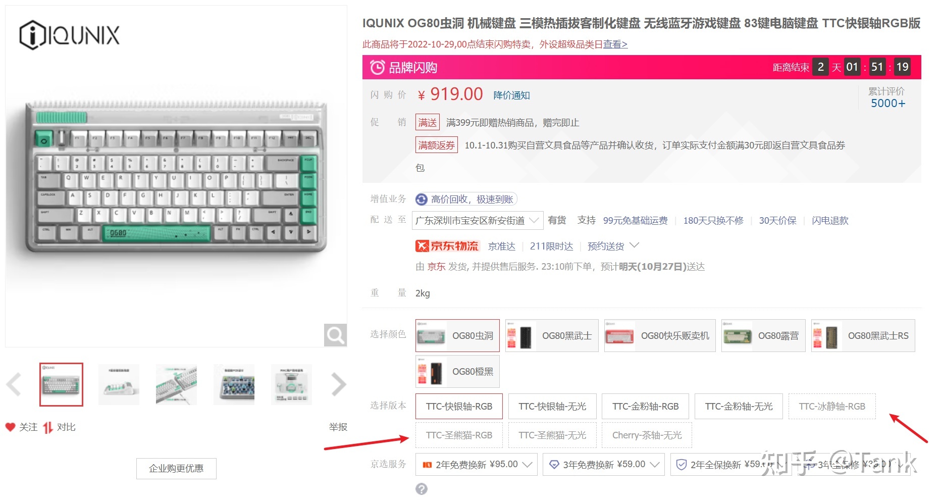 我是今年2月份测评的这款 OG80 虫洞配色,当时铝厂只有这一款配色,到现在双十一的时候 OG80 一共有五种不同配色,最新出的有黑武士 RS 全透版本,喜欢透明键盘的朋友不要错过。